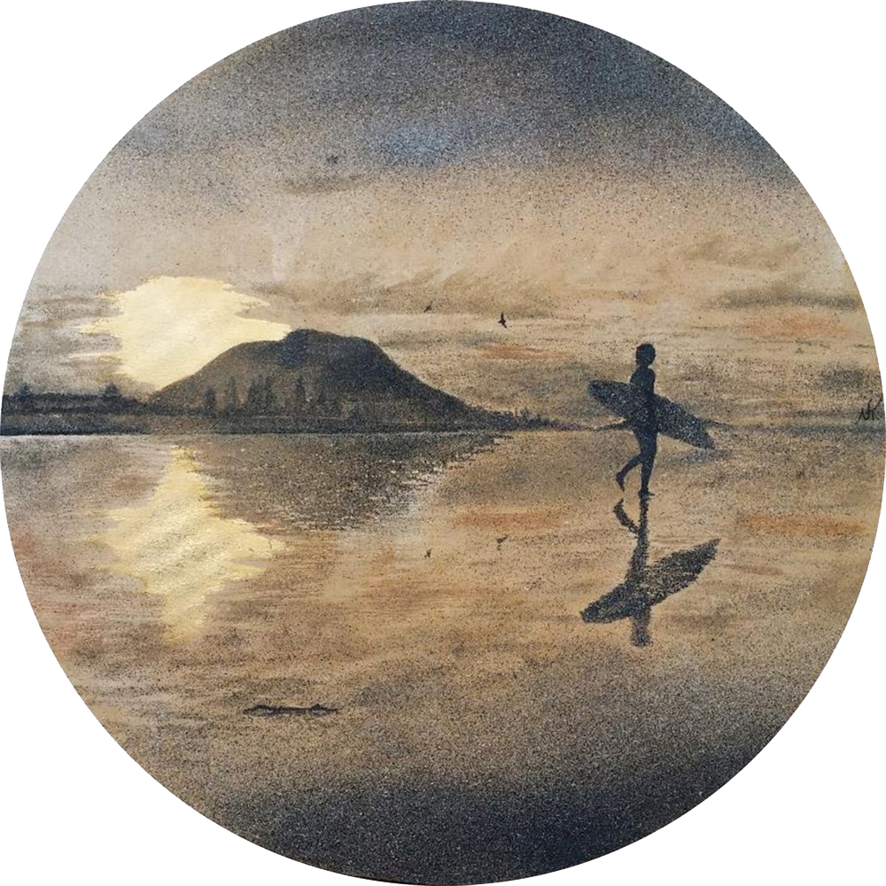 - SOLD - at the NZ Art Show. Created with gold leaf & 7 shades of natural New Zealand sand Size: 700 mm diameter